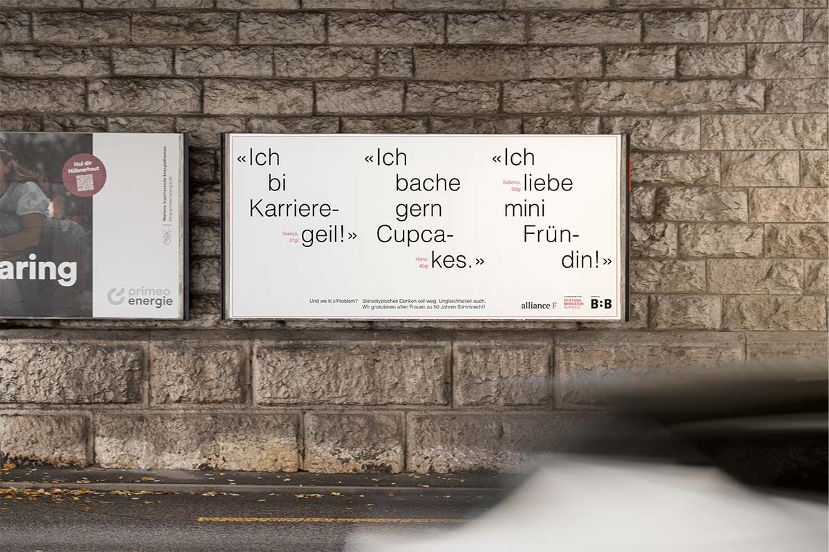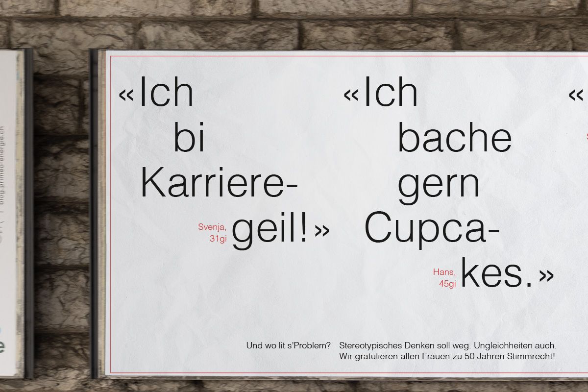 Meine Arbeit beinhaltete das Konzipieren, das Wording und die Gestaltung der Kampagne. Ziel war es, mit stereotypischen Zitaten zu verwirren und aufmerksam zu machen, dass dies nicht mehr zeitgemäss ist.