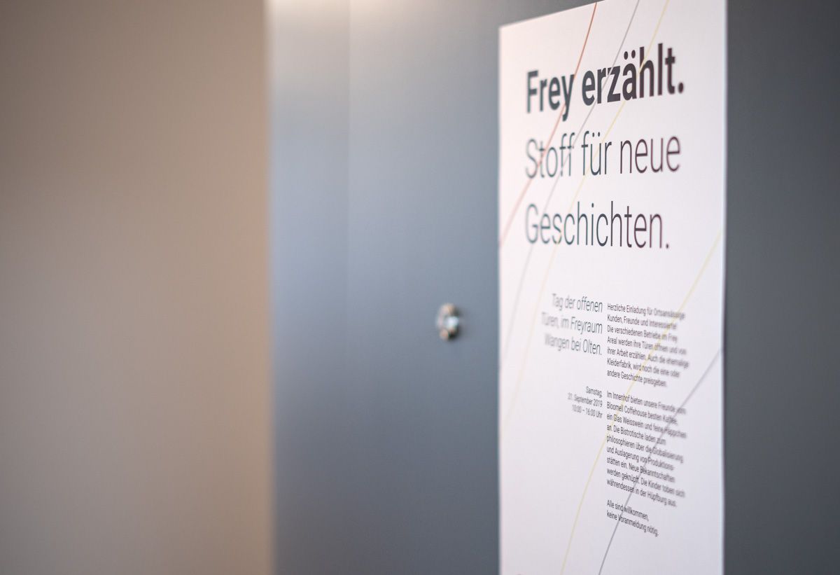 Print- und Instagramkampagne zur Bekanntmachung des Tages der offenen Türen im Frey-Raum, dem ehemaligen Kleider-Frey-Areal in Wangen bei Olten.